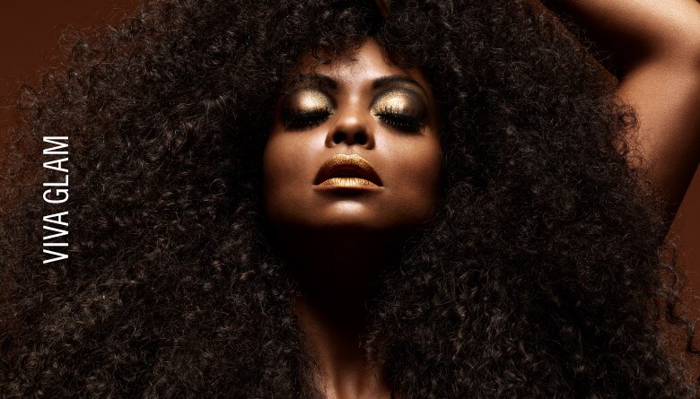 For her return as VIVA GLAM spokeswoman, Taraji infuses coppery brown Lipstick and Lipglass with gold pearl for regally seductive colour.